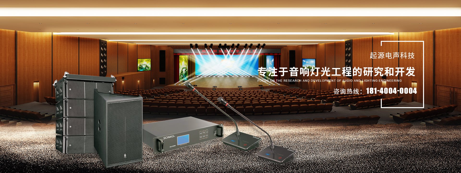 起源電聲科技專注于音響燈光工程的研究和開發,承接大型舞臺燈光音響系統、智能化會議音響系統、KTV音響工程、家庭影院、廣播工程